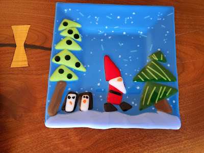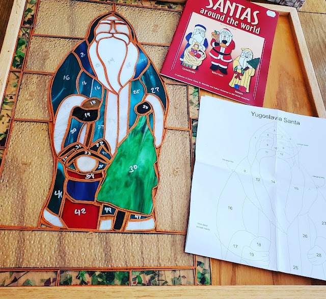 Our inspiration was a 1910 Yugoslavia Santa. I found a booklet online by Vicky Gillespie that is filled with many different Santas from around the world. All of the glass/wood was purchased from Delphi Glass.